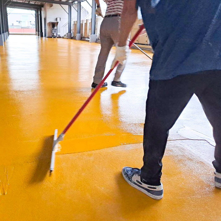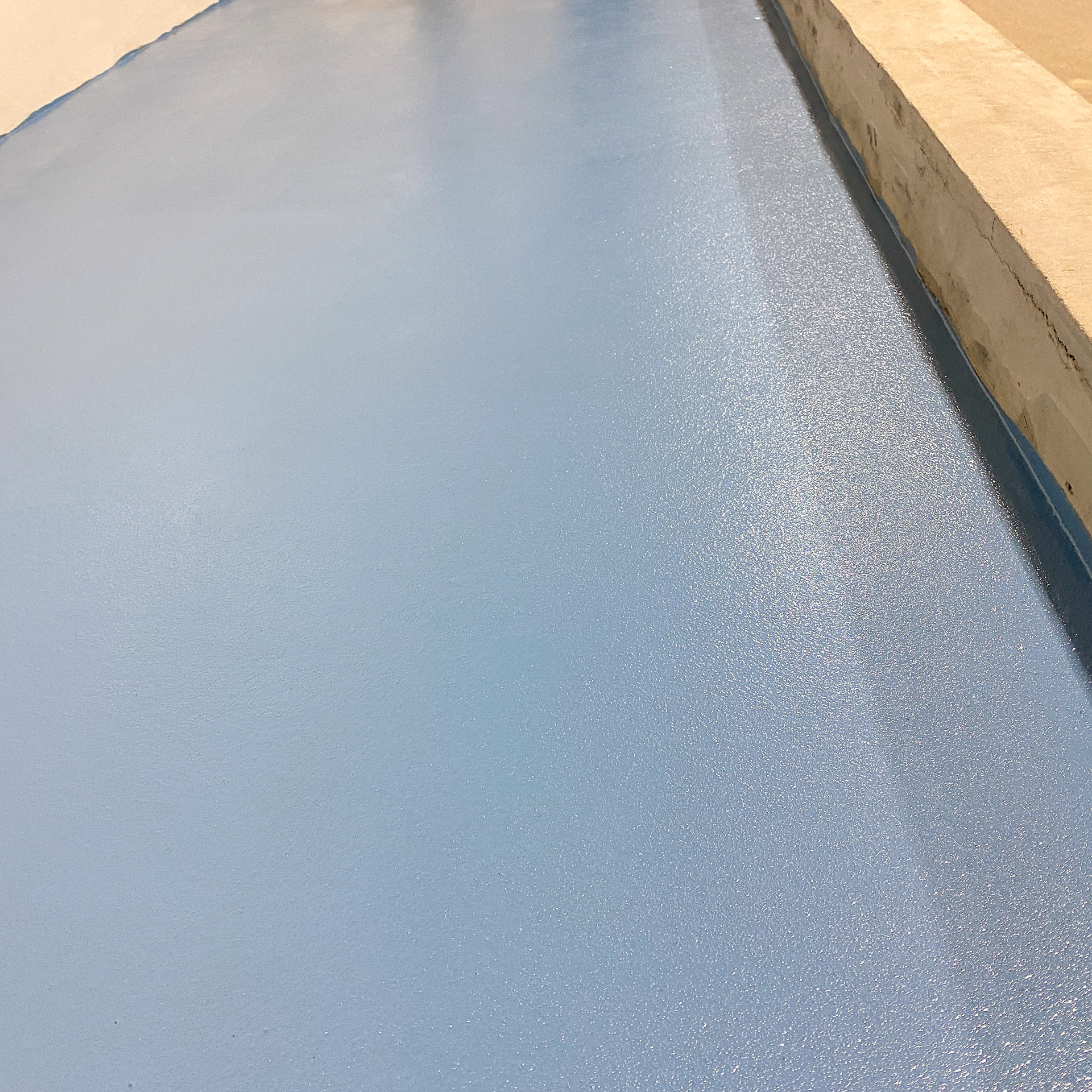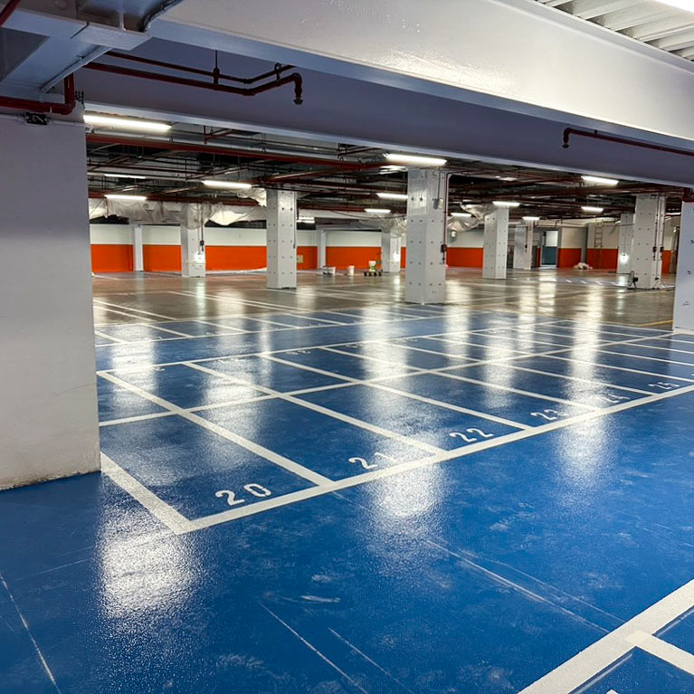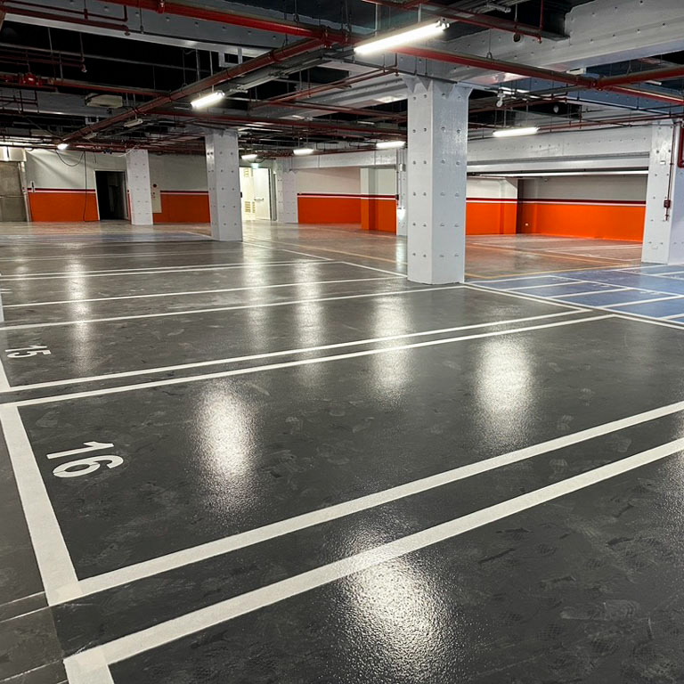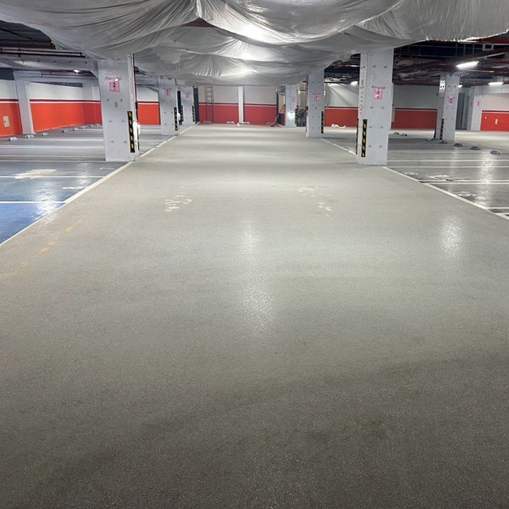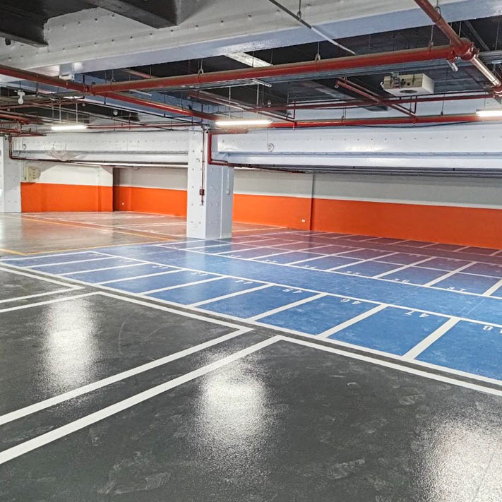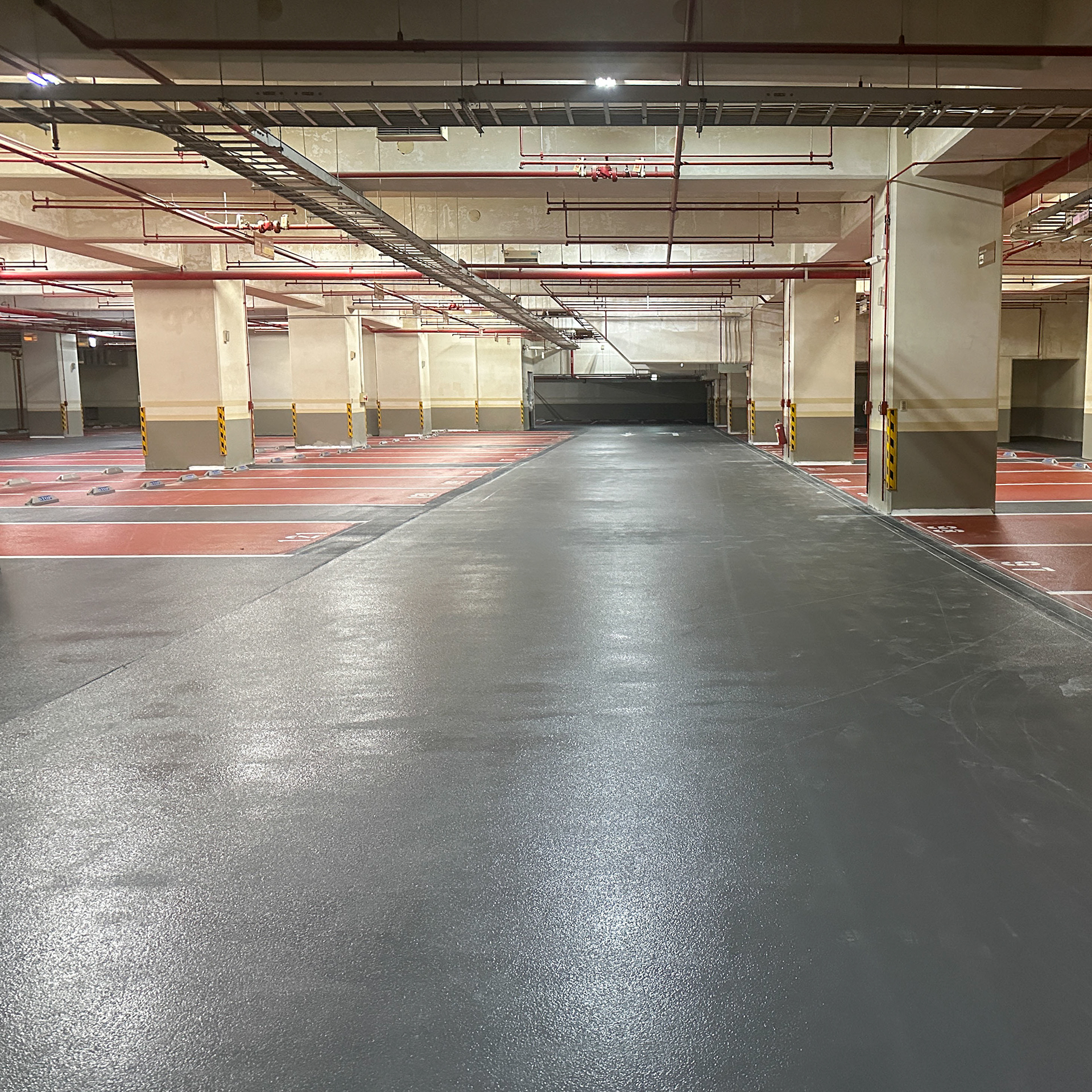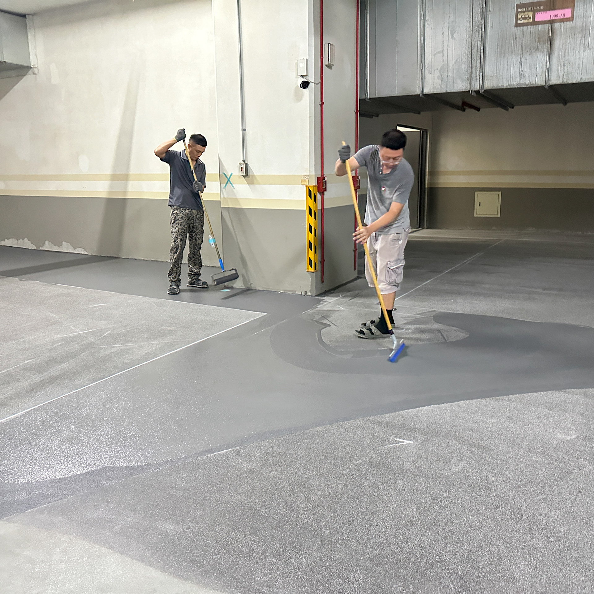 防滑且具韌性塗層,耐化學與油汙侵蝕,較一般環氧地坪耐用。