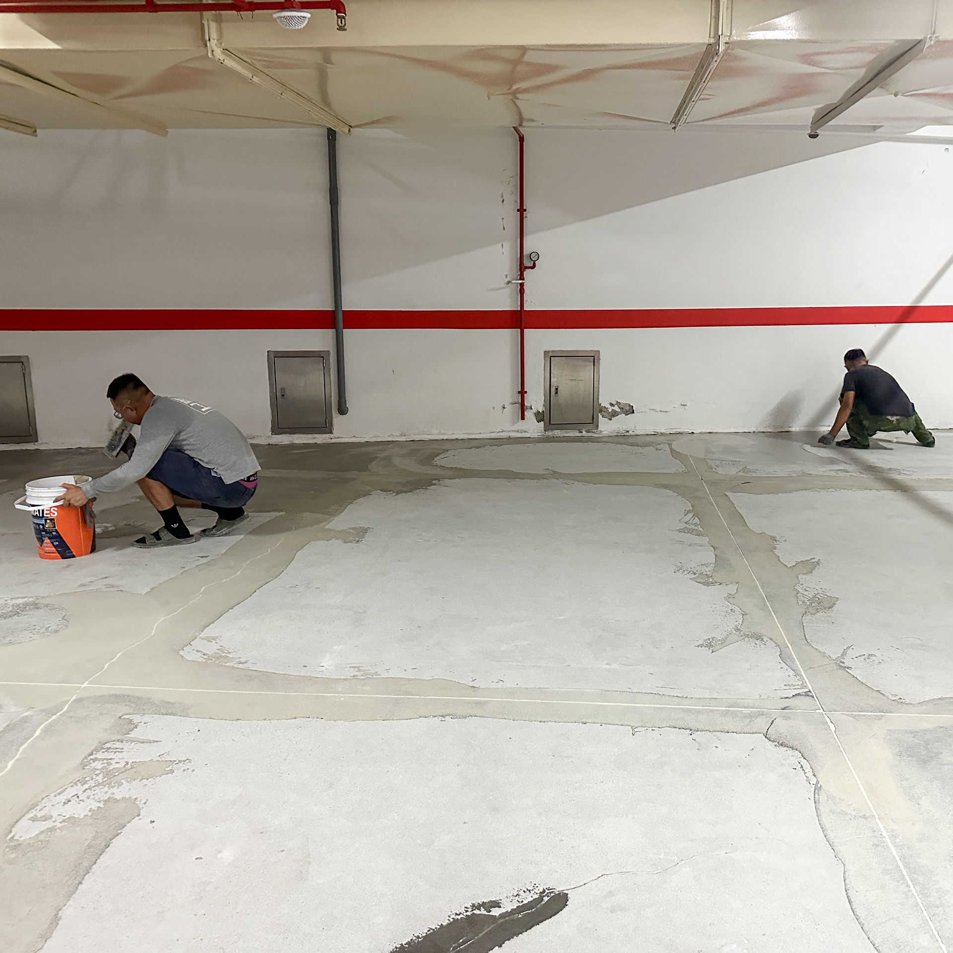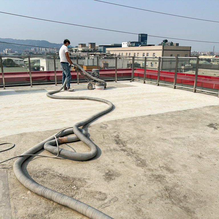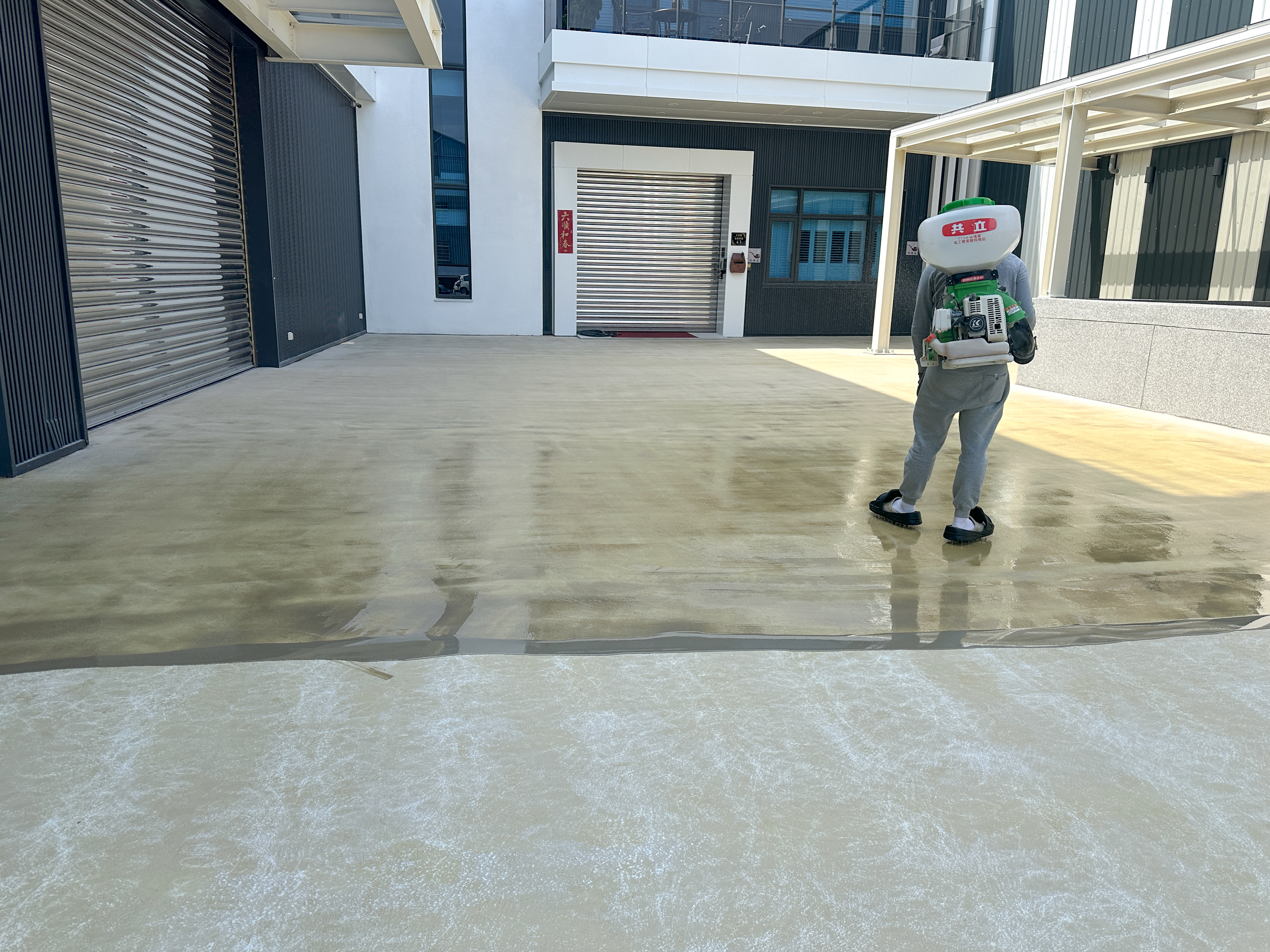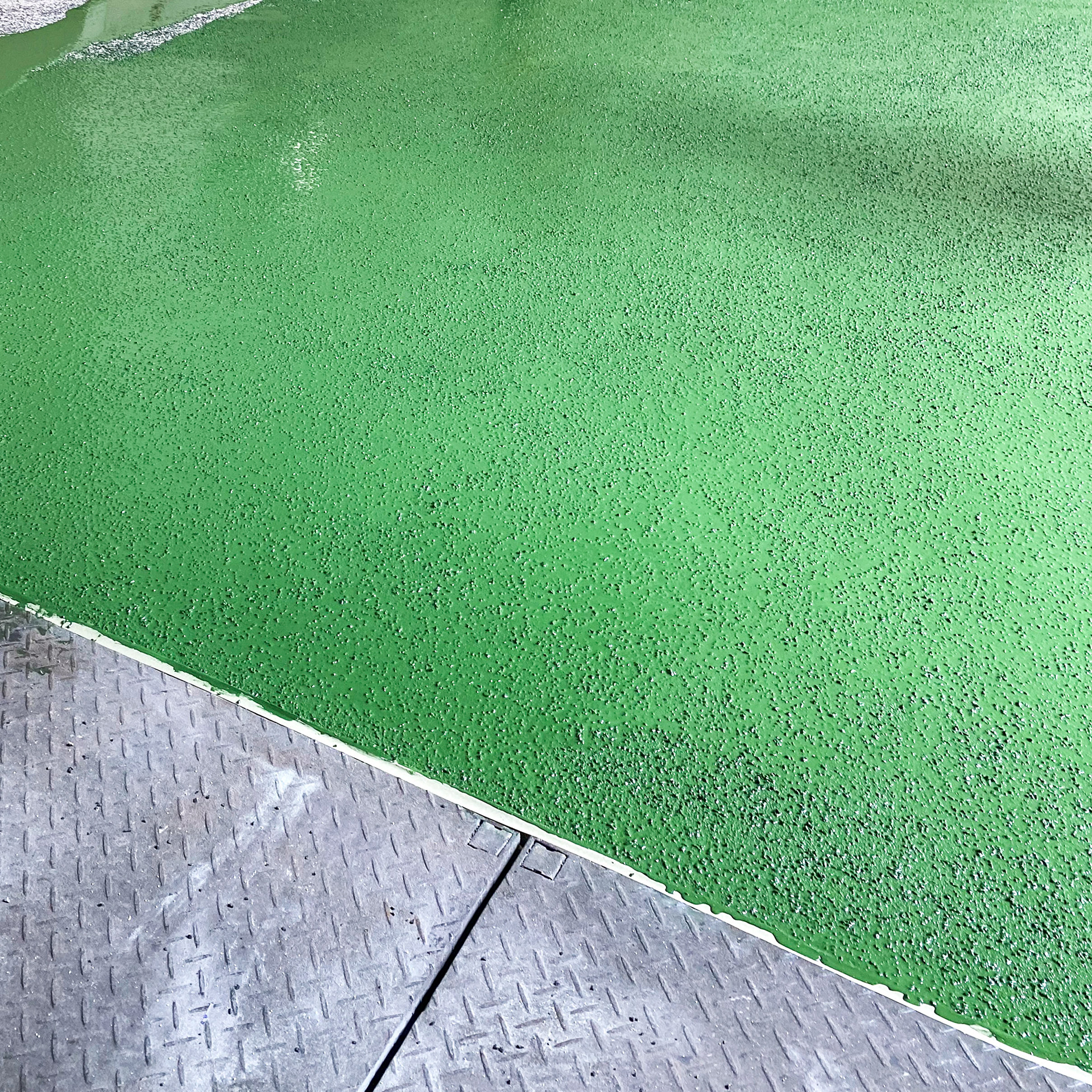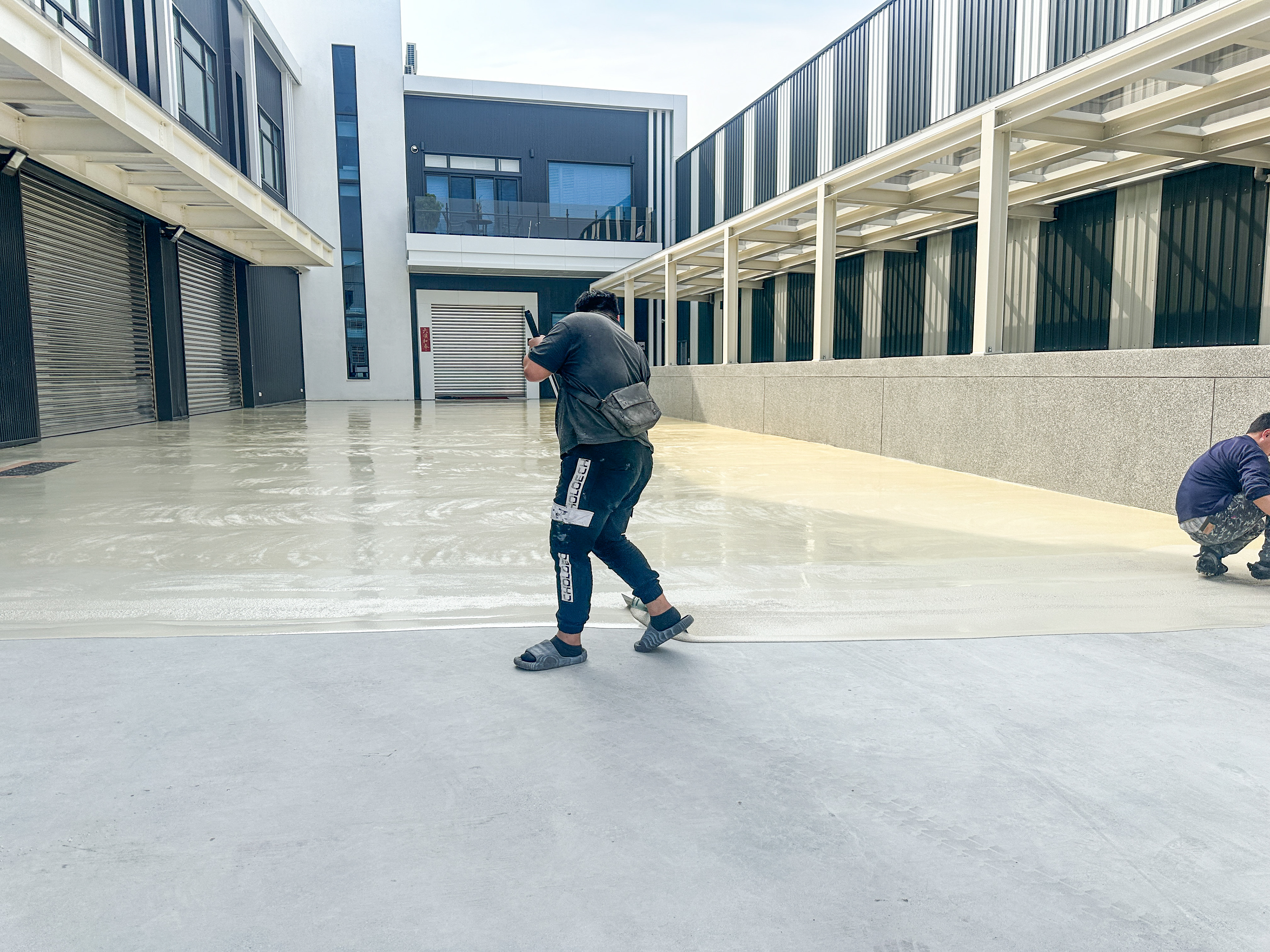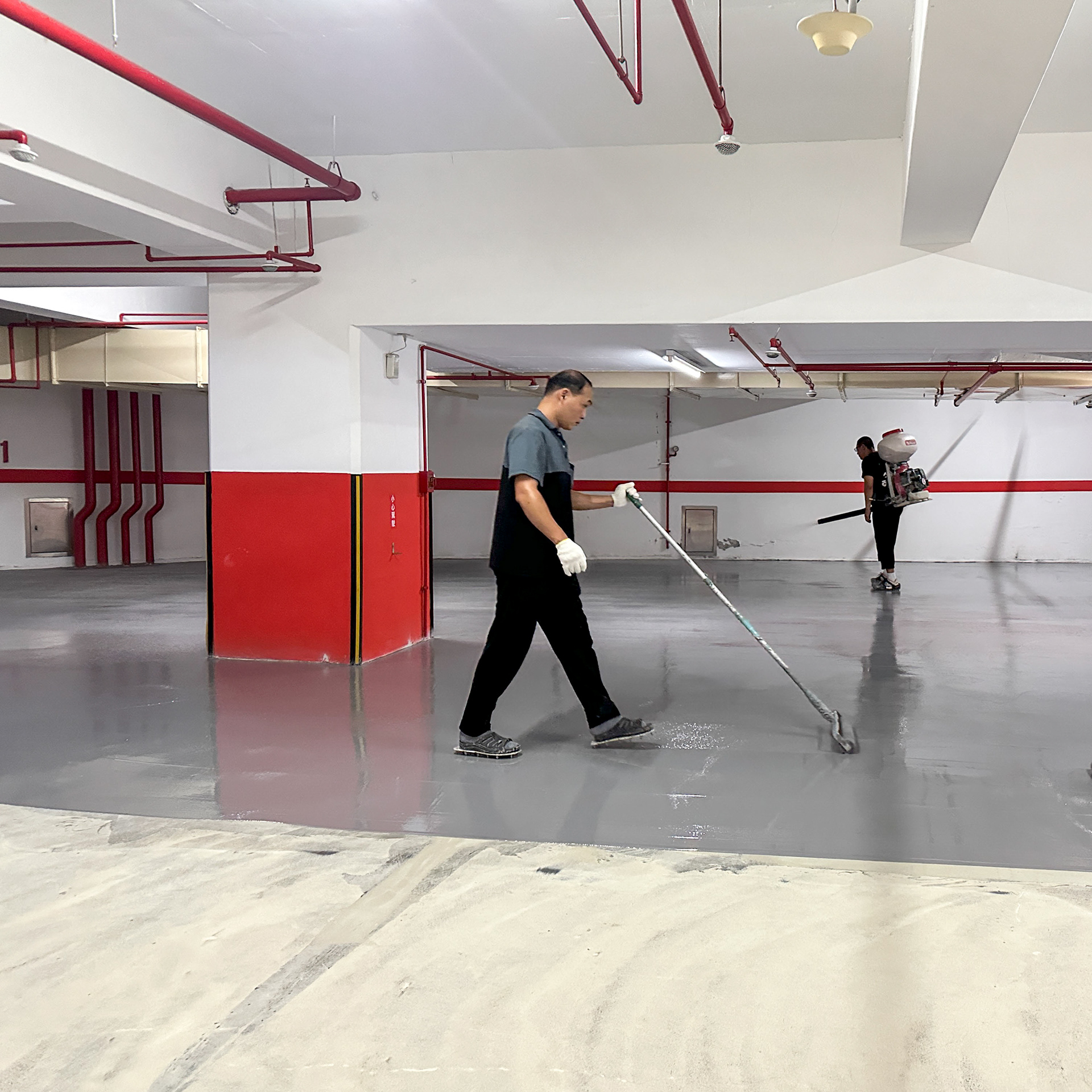 防滑且具韌性塗層,耐化學與油汙侵蝕,較一般環氧地坪耐用。